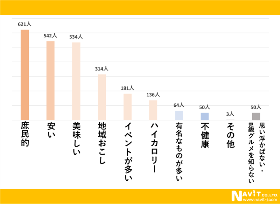 B級グルメのイメージは何ですか?(対象者:1000人)※回答数:2495