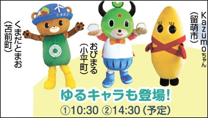 留萌市の「KAZUMOちゃん」、小平町の「おびまる」、苫前町の「くまだとまお」が、イベントを盛り上げにやってきます。