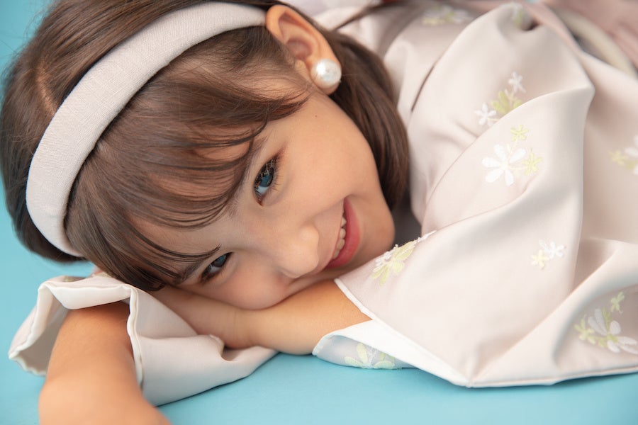 大きなパールのイヤリングやカチューシャでレトロ感を出してインパクトのある七五三写真を!