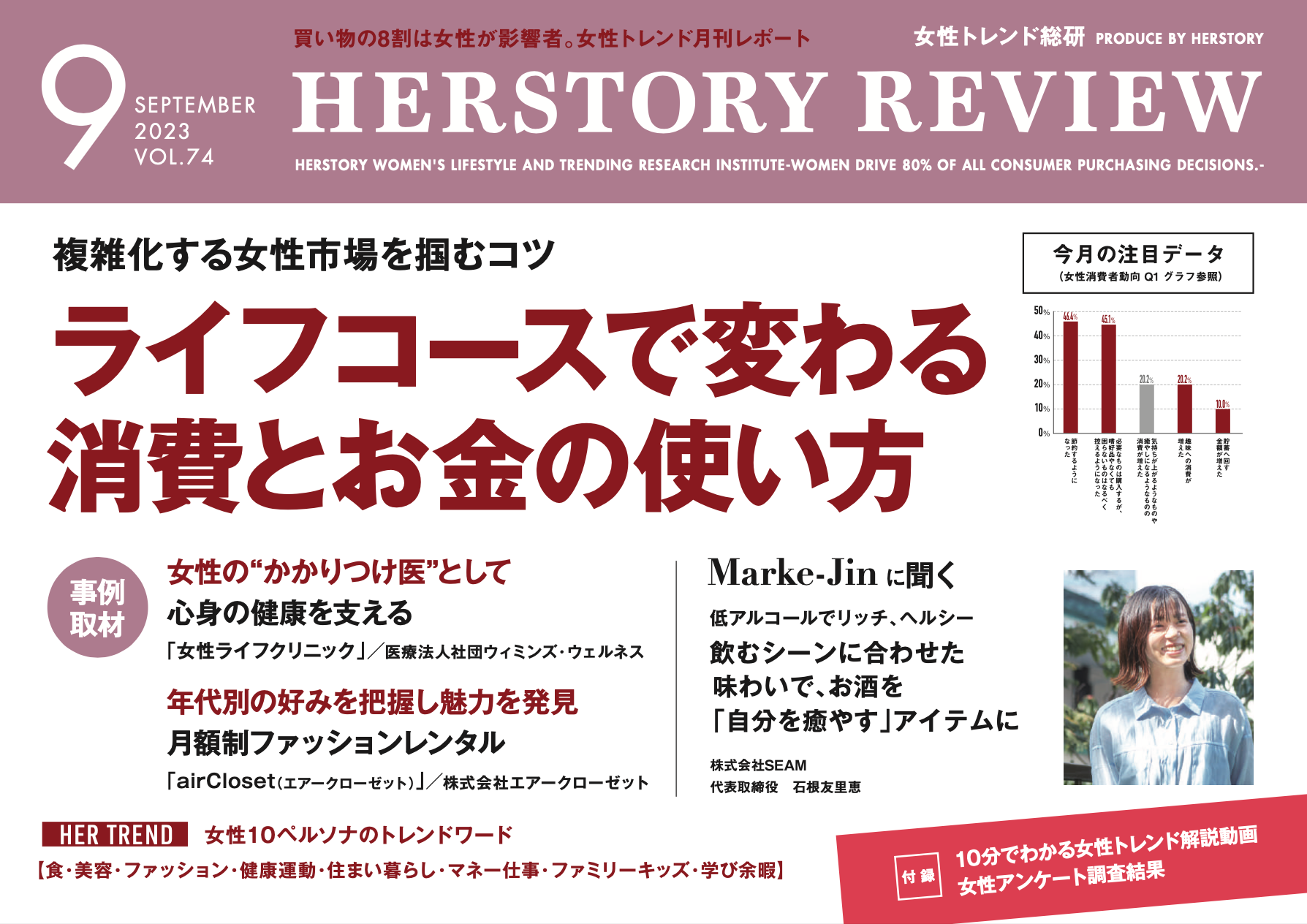 女性トレンド総研が消費の8割に影響を及ぼす女性の消費動向、市場の最新トレンドを毎月追いかけており結果の月刊レポートを展開し各企業のマーケティングに幅広く活用いただいています。本リリースの調査の詳細は7月号のHERSTORY REVIEWをぜひご覧ください。
