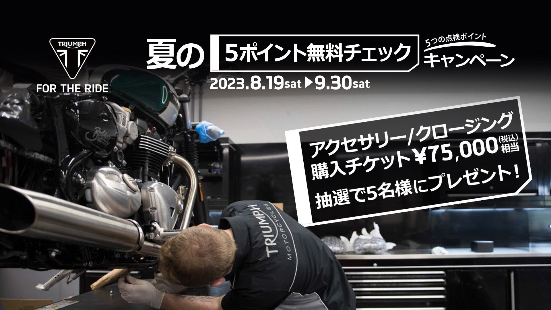 トライアンフから「夏の5ポイント無料チェックキャンペーン」のお知らせ