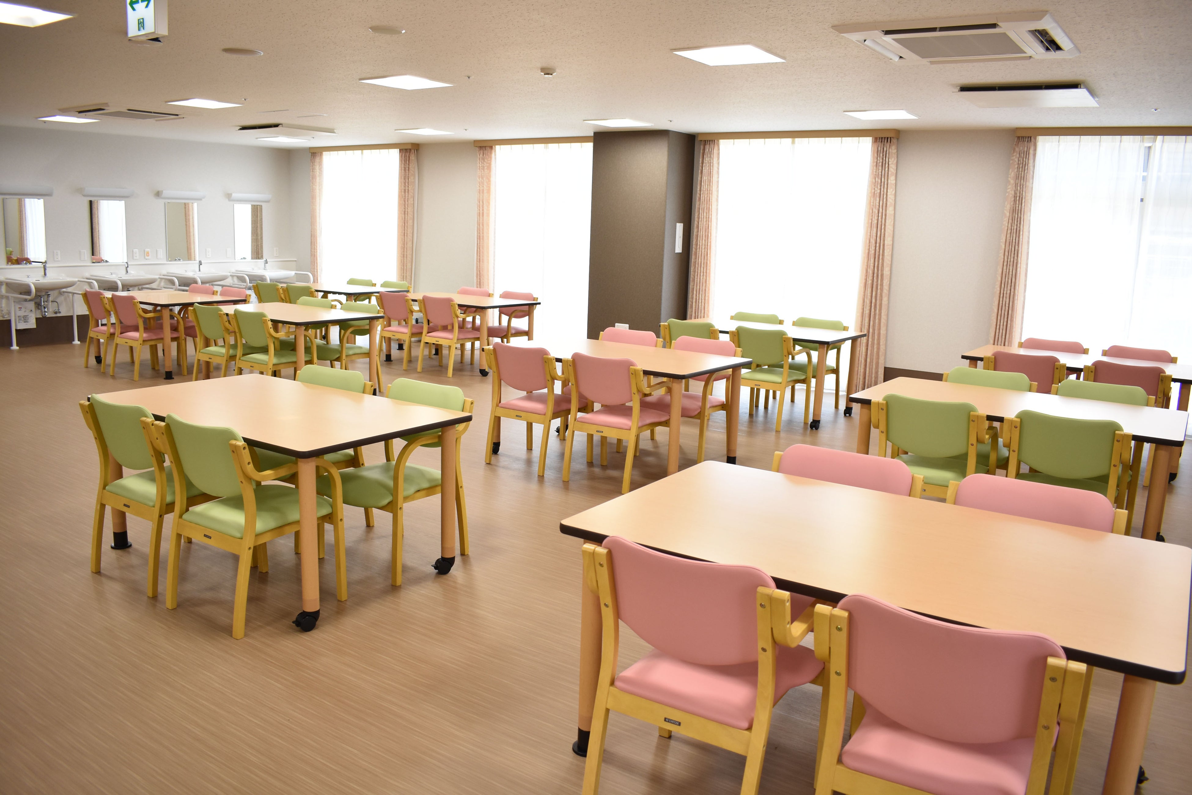 共用設備/食堂兼機能訓練室、浴室(一般浴・機械浴・個浴)、ヘルパーステーション、健康管理室、