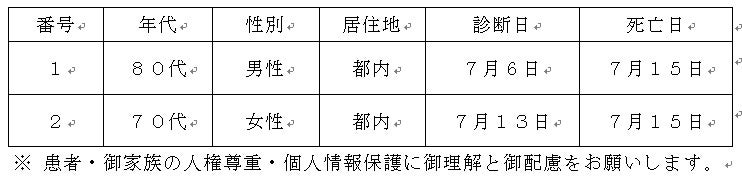 新型コロナウイルスに関連した患者の死亡について business Twitter Facebook はてブ Pocket LINE コピー 2022.07.16 この記事は約1分で読めます。 都内で新型コロナウイルスに感染した方が死亡されましたのでお知らせします。 お亡くなりになった方のご冥福をお祈り申し上げます。