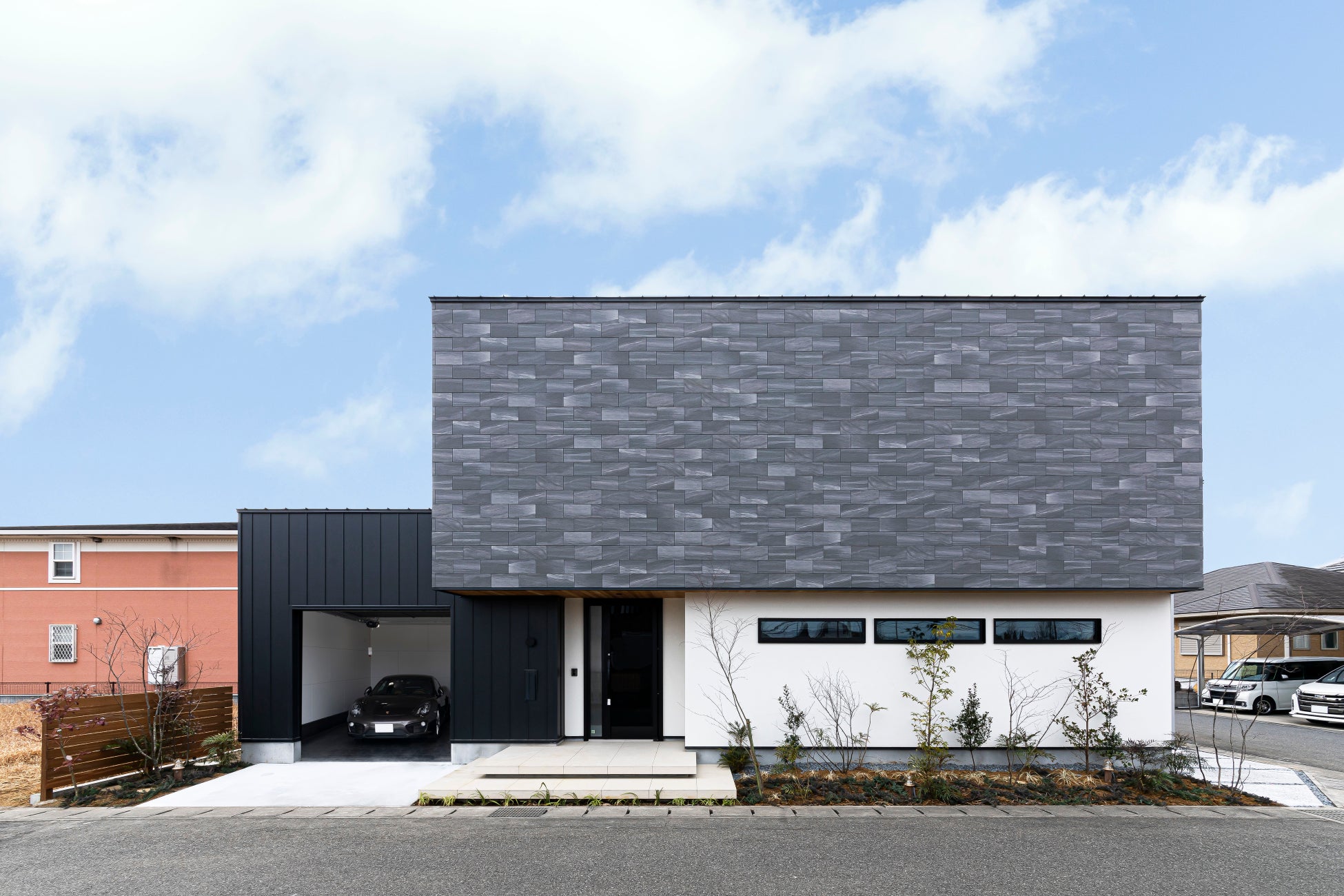 タイル×ガルバリウム×塗り壁が調和する、上質なファサード。