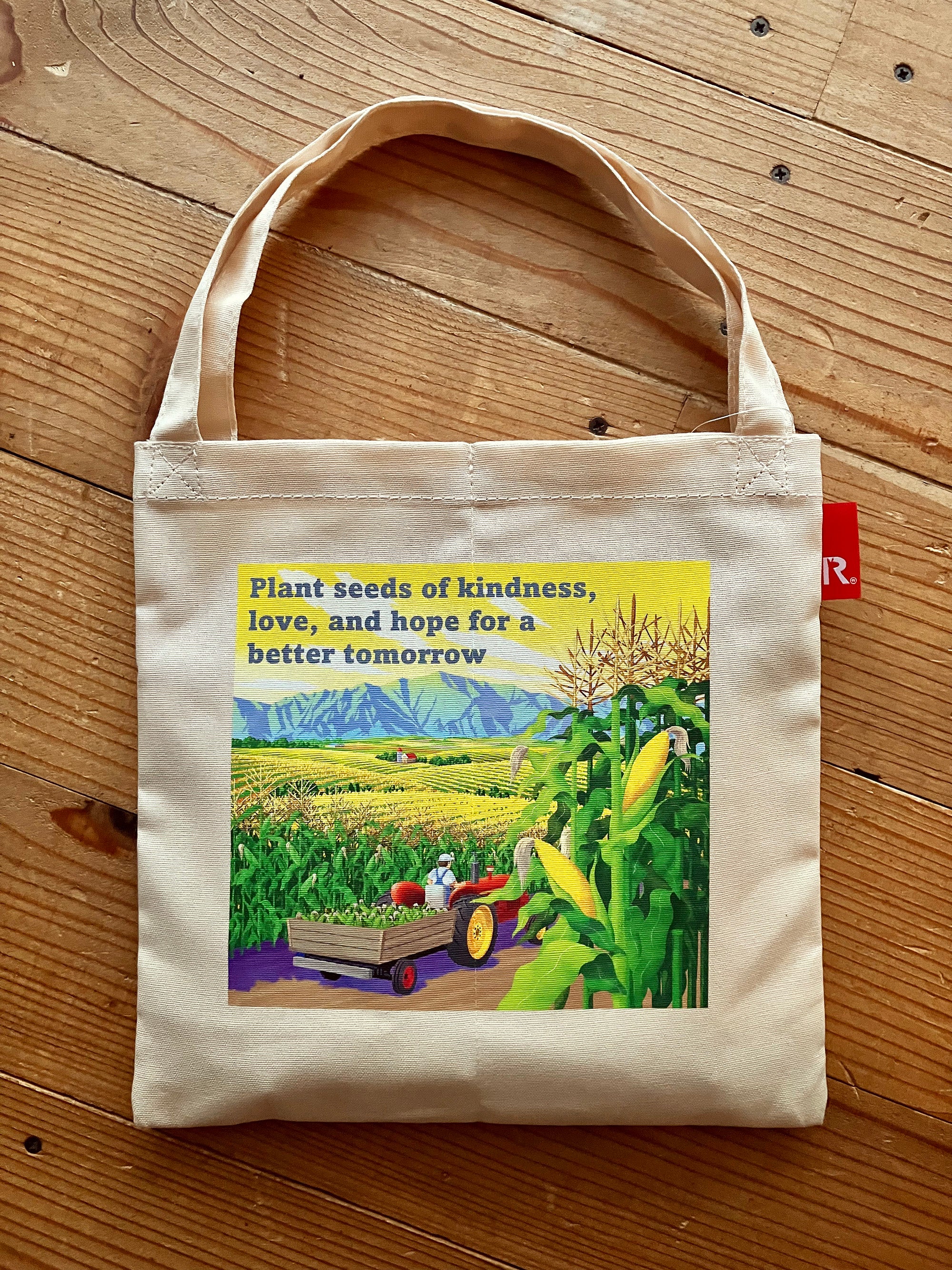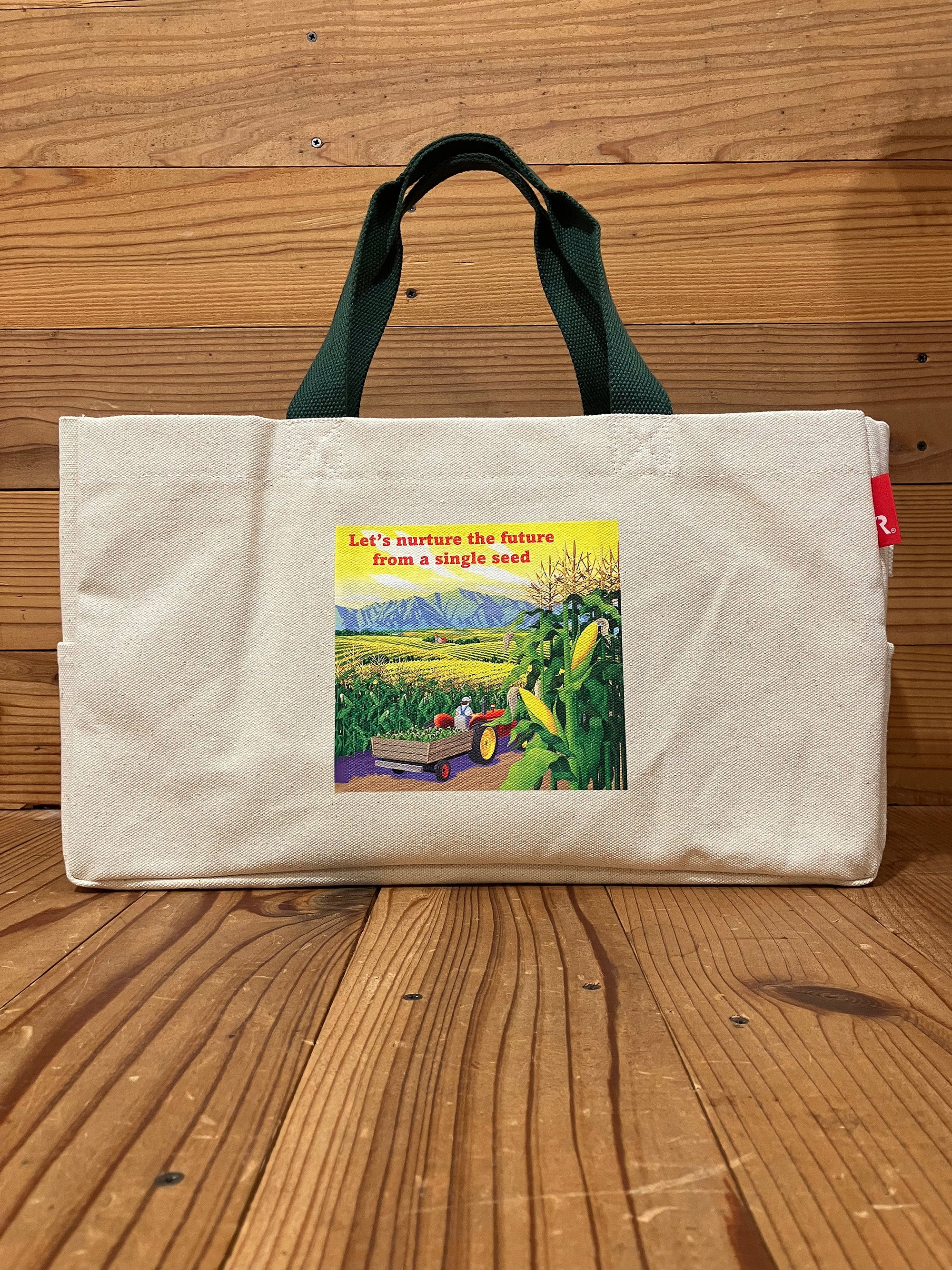 仕切りで3つに分かれた本体に、コーンと他の荷物を分けて収納できるのでこれ1つでどこへでもお出かけできる4本タイプ。”Plant seeds of kindness, love, and hope for a better tomorrow.”(明日をより良くするために、優しさ、愛、希望の種を蒔こう。)将来を良くするためには、善意や愛情、希望に満ちた行動を取ることが重要であるという意味を表している格言。良い行いや思いやりの種をまくことが大切だとする、農業に関することわざをプリントしています。