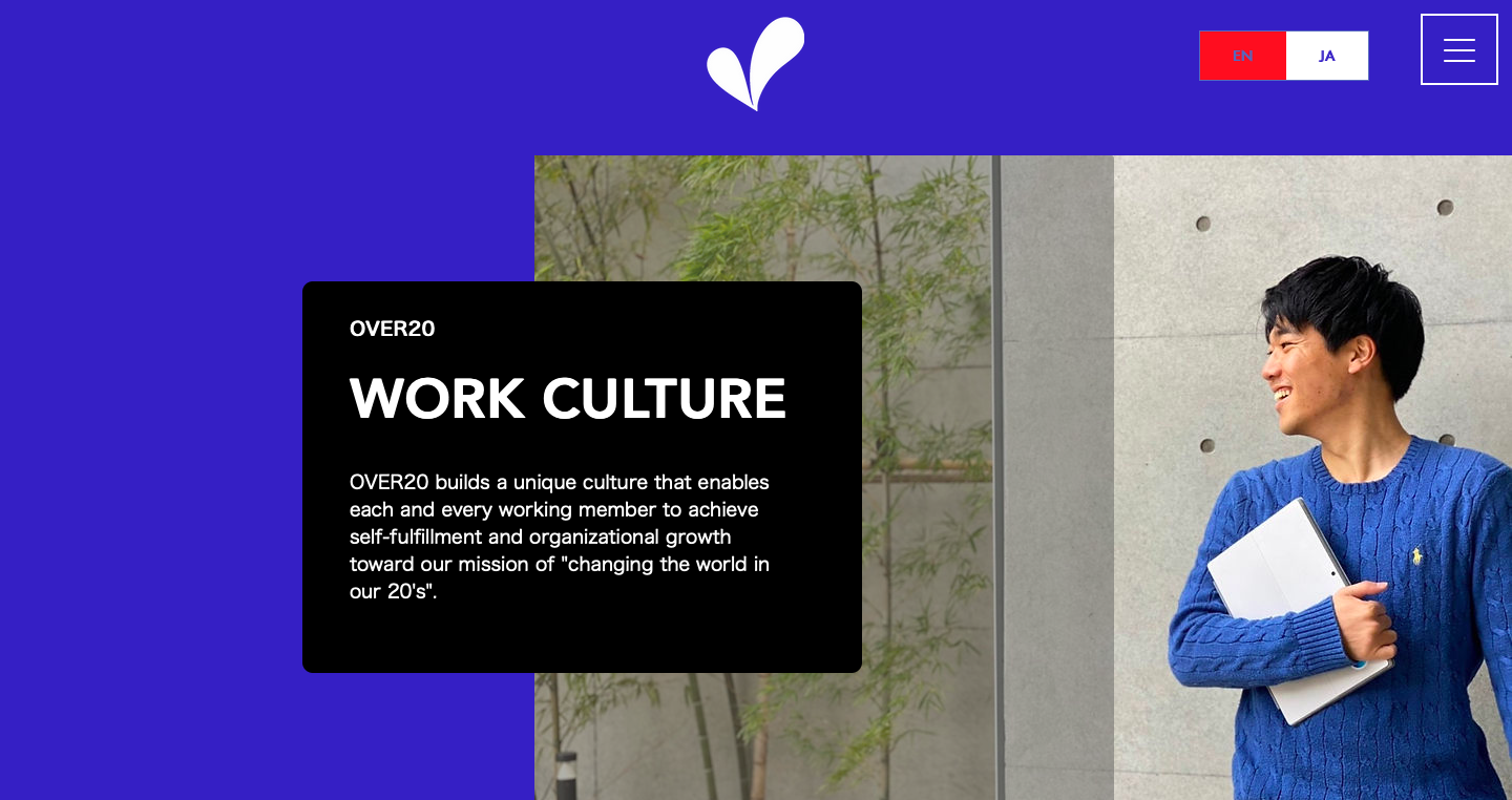 「20代から、世界を変える」をミッションに掲げる株式会社OVER20&Company. (本社:東京都港区、代表取締役社長:石堂里佳、以下「当社」)は、芸術を専攻しているインターン生によるHPデザインを採用し、この度そのデザインサイトを新たに公開しました。