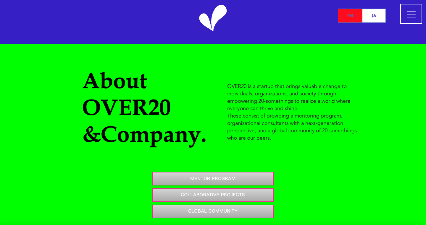 OVER20が目指すビジョン、夢、希望、愛が表現されたサイトです。ぜひご覧ください。