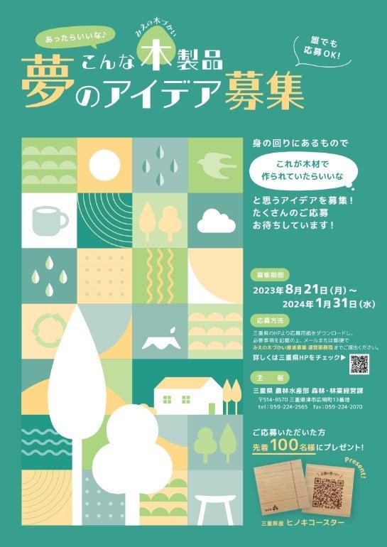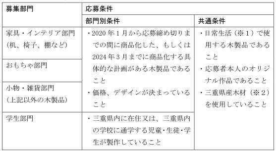 三重県産の木材を使用した暮らしで使う「木製品」を募集します。