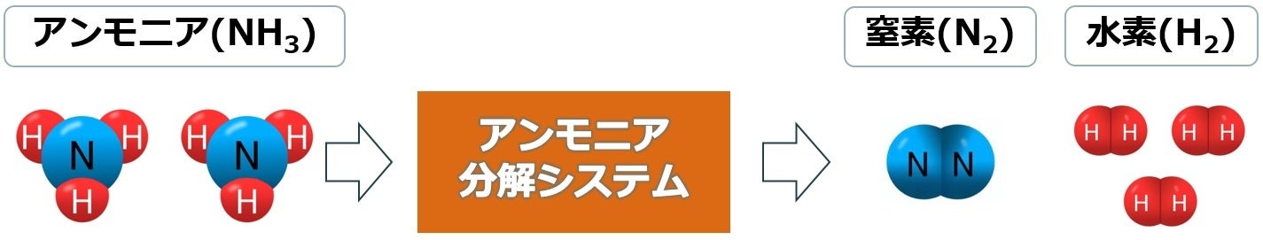 アンモニア分解技術はアンモニアから水素を取り出すために不可欠であり、サプライチェーン構築の実現において重要な役割を担います。アンモニア熱分解触媒を用いた最適なシステムの共同開発に当たり、三菱重工は、アンモニア製造プラントをはじめとした国内外における多数の化学プラント納入実績や、これまで培ってきたアンモニアや水素のハンドリング技術に関する深い知見を生かします。また、日本触媒は、アクリル酸触媒をはじめとするプロセス触媒や、自動車触媒、排ガス触媒などの環境触媒を多数開発・実用化してきた触媒技術の実績と知見を生かします。本分解システムから取り出された水素は、クリーンな原料・燃料として使用することが可能であり、早期実用化を目指し開発を推進していきます。