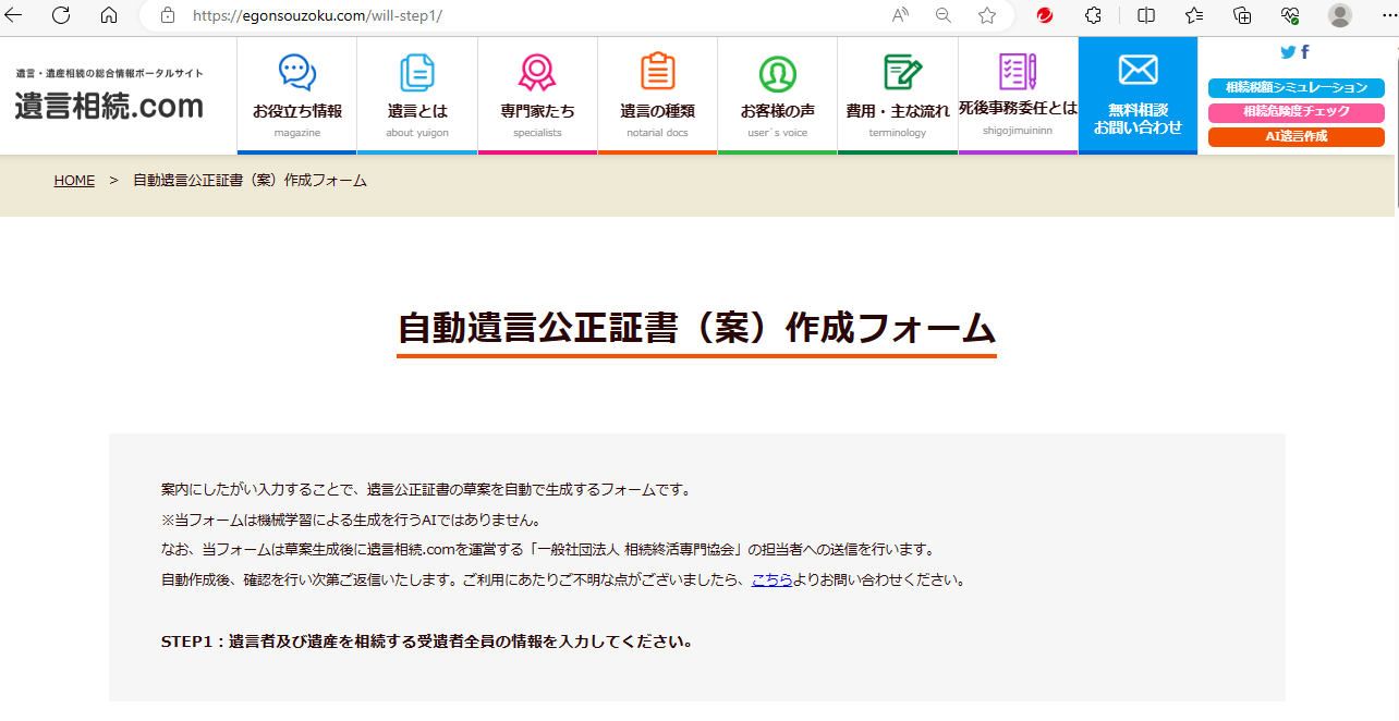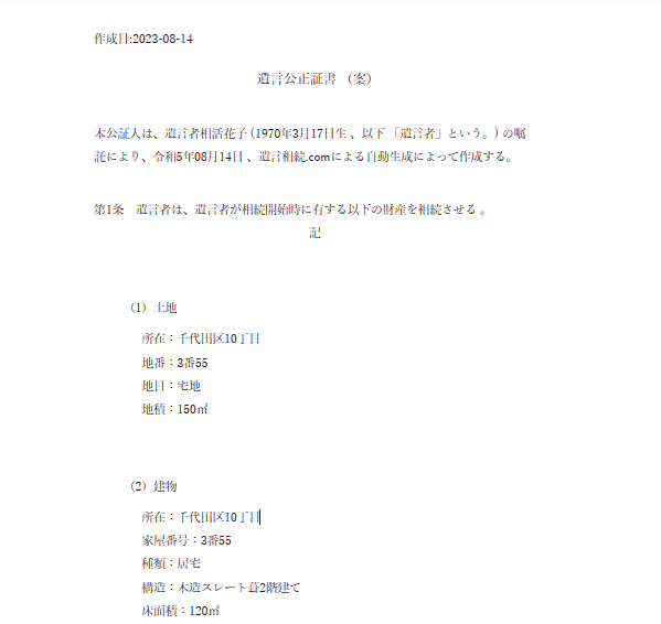 なお、正確にはこのソフトは現時点ではAIではありませんが、全自動で遺言のひな形を作成することができます。好評であれば本格的にAI開発にも取り組みますのでお試しください。