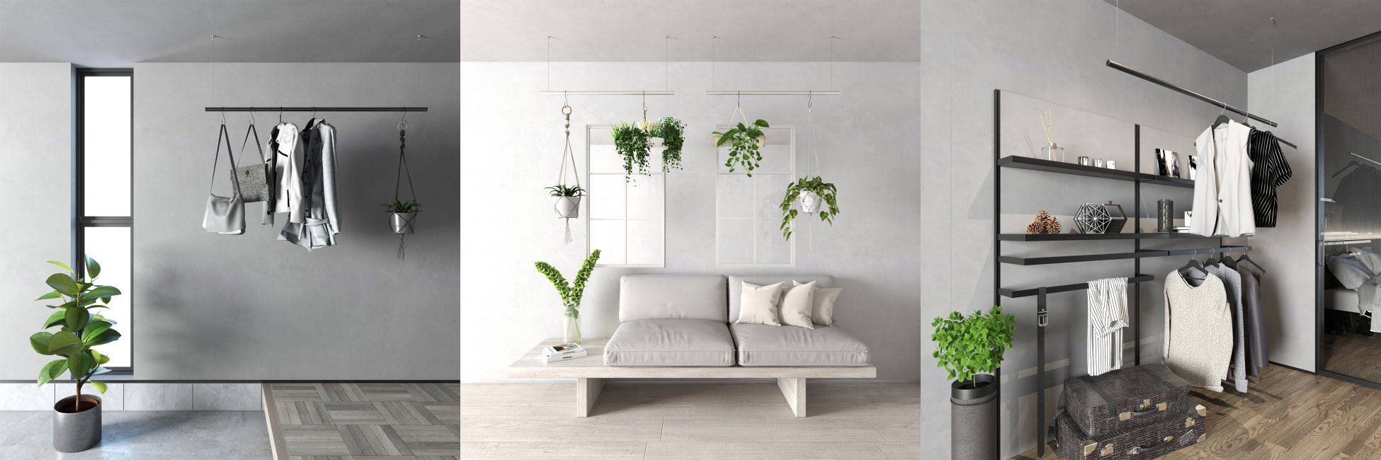 多様化している様々なインテリア空間にとけこむ室内物干しバーはいかがでしょうか。