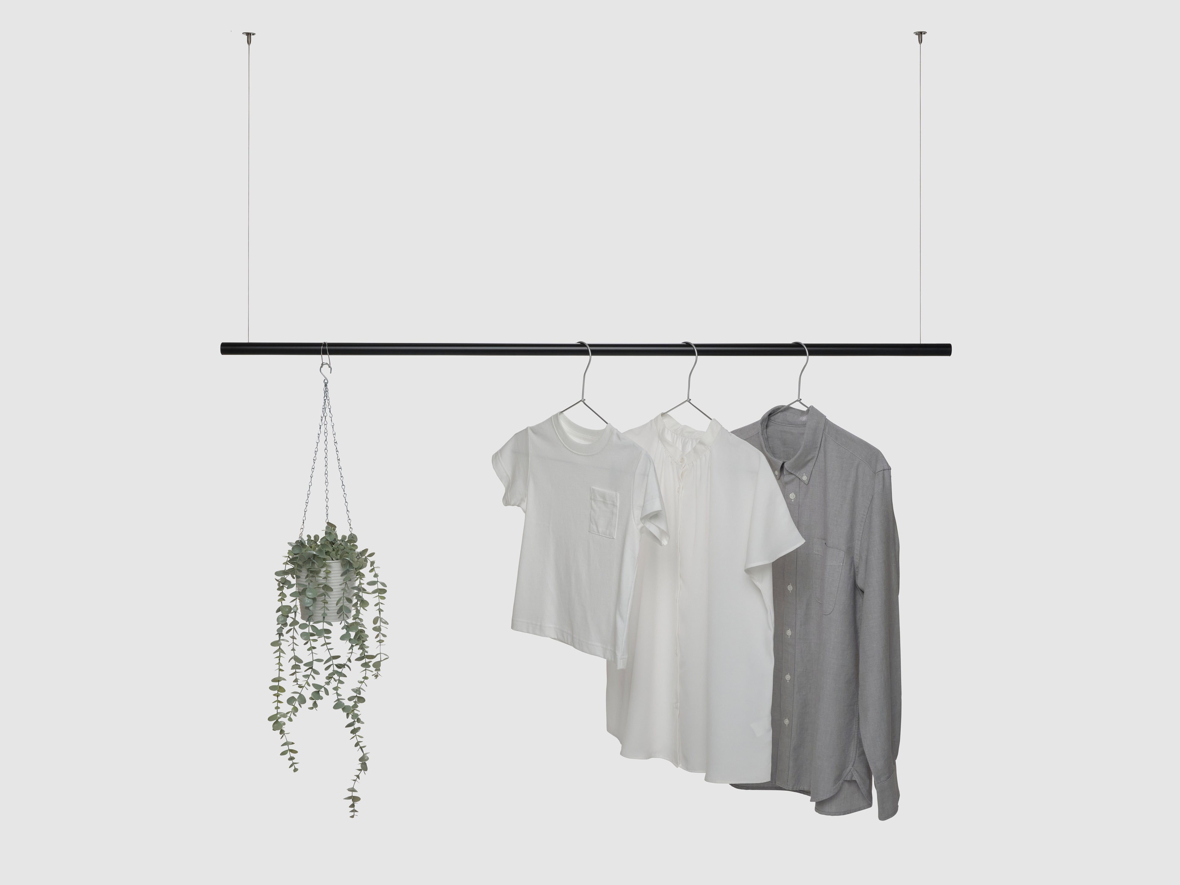 ワイヤーシステムとアルミパイプで構成されたハンガーバー。存在を主張しない、アパレルショップのディスプレイハンガーのような美しいデザイン。乱雑になりがちなランドリールームですが、ALCOLOLOハンガーバーならすっきりとした空間に。洗濯も捗ります。
