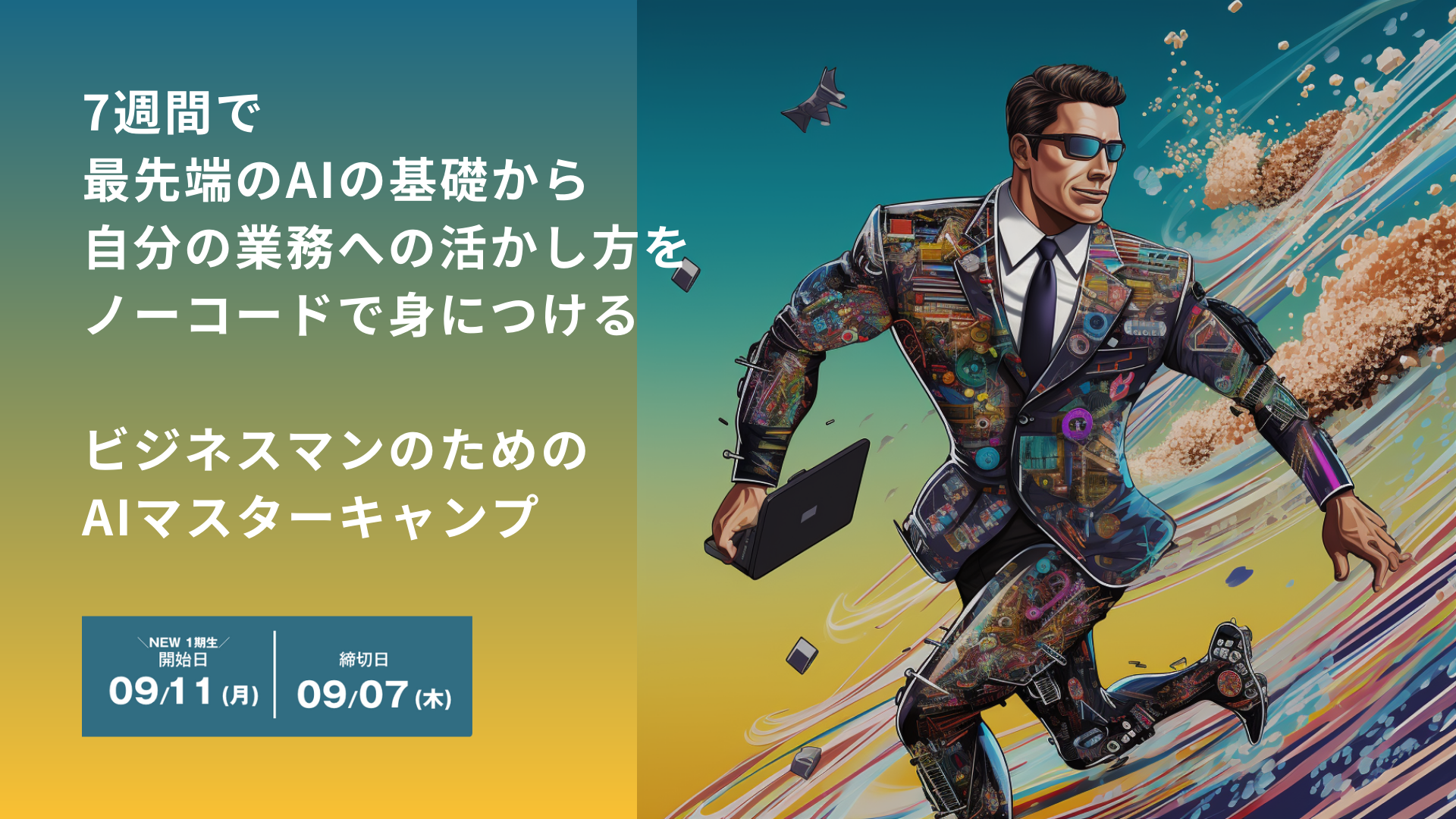 AIに関する基礎知識と、「今」話題になっているかつ「業務に使える」AIを7週間の短期集中で習得します。