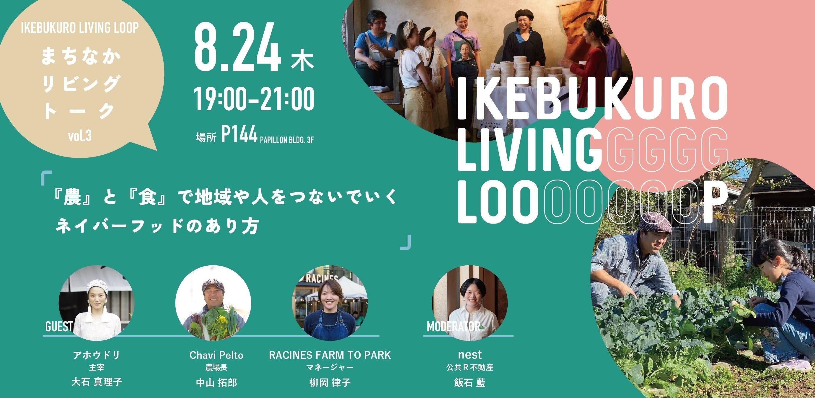 リアルな場でもまちなかリビングを知ってもらい、まちに関わりたい人が接点を持てる場として、テーマ毎に池袋エリアの企業・お店・個人が集まり、話し合う「まちなかリビングトーク」。開催3回目は「『農』と『食』で地域や人をつないでいくネイバーフッドのあり方」をテーマに開催します。