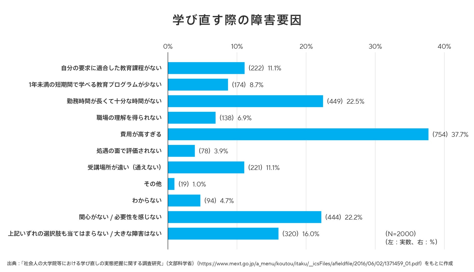 出典:「社会人の大学院等における学び直しの実態把握に関する調査研究」(文部科学省)(https://www.mext.go.jp/a_menu/koutou/itaku/__icsFiles/afieldfile/2016/06/02/1371459_01.pdf)をもとに作成