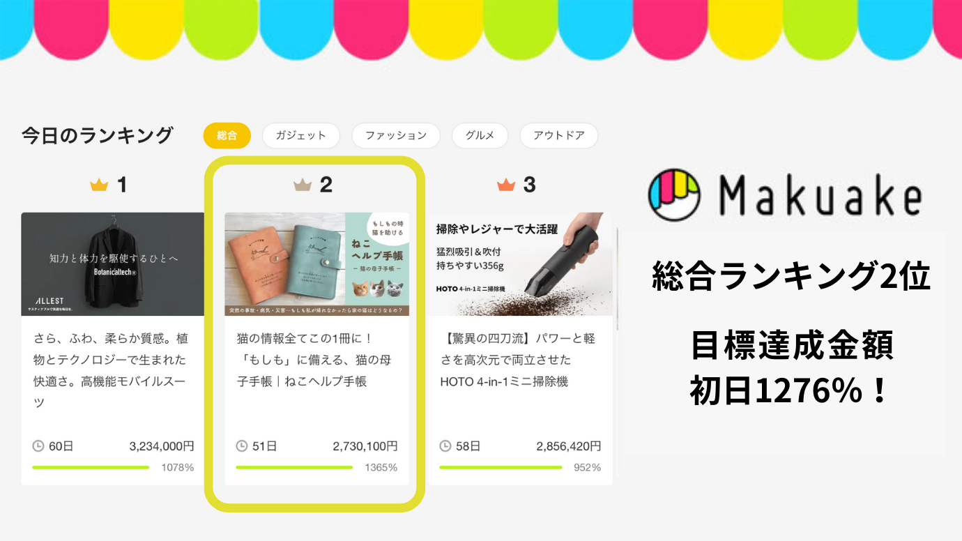 本日8月23日のMakuake総合ランキングにて、総合2位を獲得。