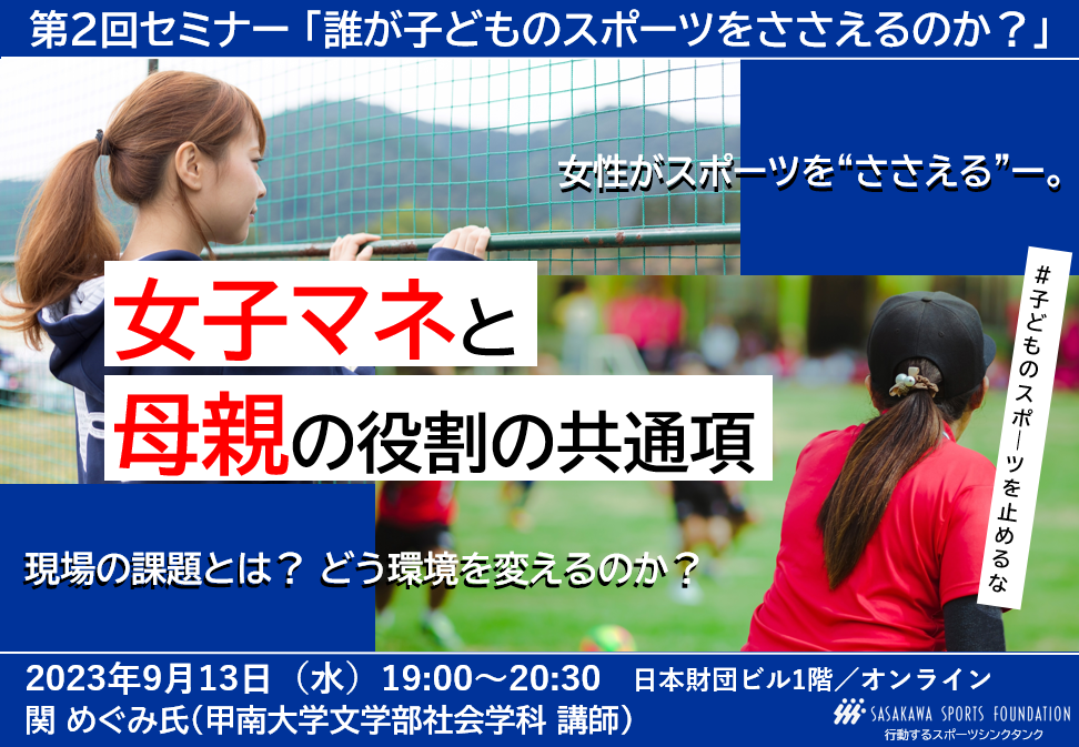課題の解決には持続可能な子どものスポーツ環境の構築が必要です。このたび、子どものスポーツを「ささえる」視点から考えるセミナー『誰が子どものスポーツをささえるのか?』を複数回開催予定でございます。