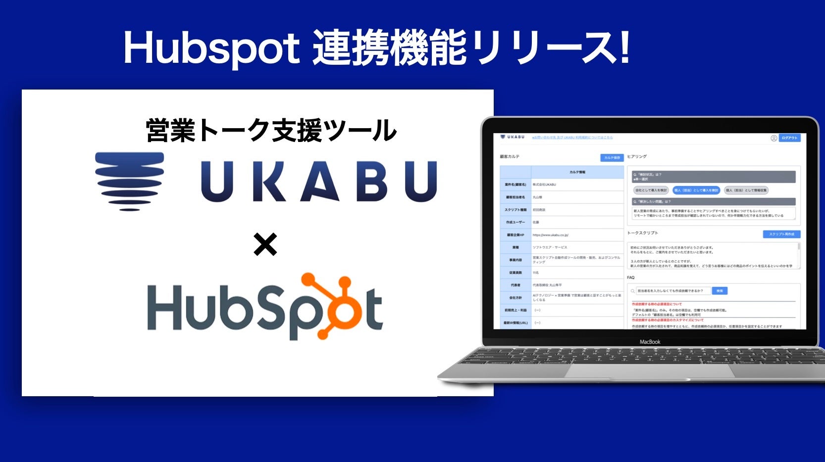 今回リリースした連携機能によって、UKABUを活用して、入力した商談や電話営業でのヒアリング情報や商談メモを、連携ボタンを押すだけで、Hubspotに登録されている取引先や商談、取引先責任者、リードの活動に自動登録することができます。