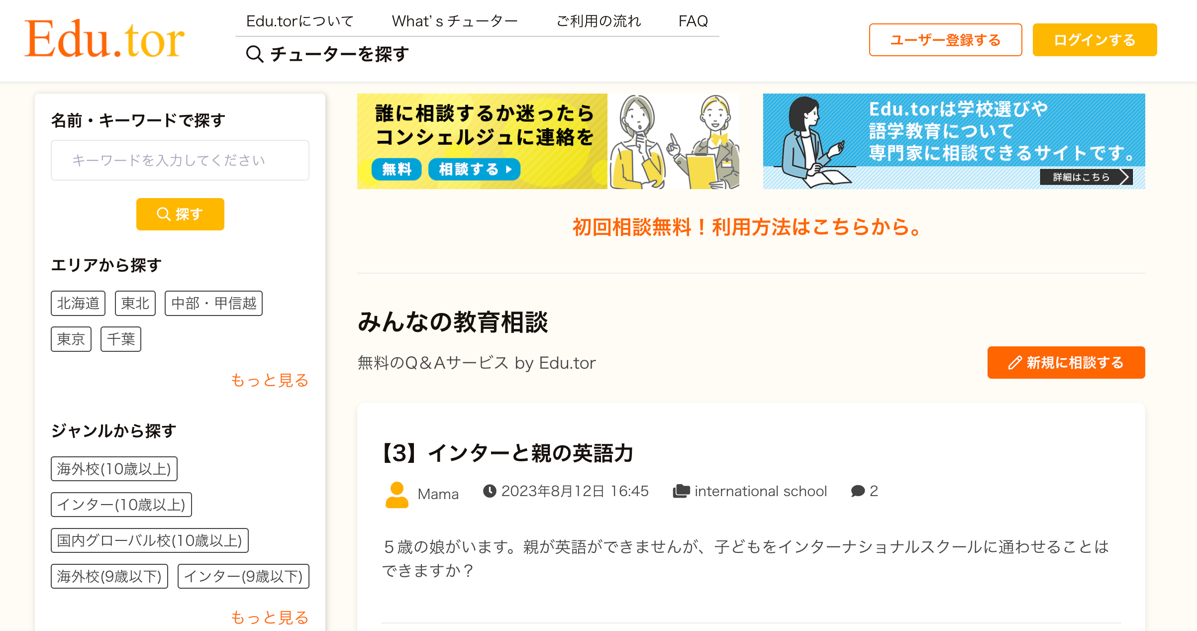 お子様の教育や学校選び、進路について、無料で相談できる公開型のQ&Aサービスです。
