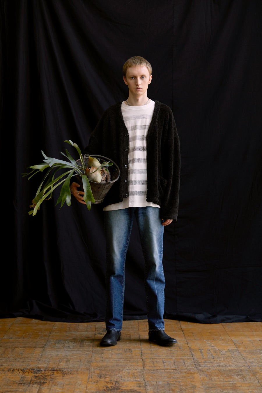 今回、バーニーズ ニューヨークの限定アイテムとしてオーダーしたのは、合計8種類あるニューフィットのスリムモデルのレザーパッチをブラックへ変更したデニムパンツ。膝から裾に向かって真っ直ぐに落ちるシルエットで、体に馴染む美しいシルエットの一本です。また、今回限定アイテムをご購入いただいたお客様へ特別にブラックデザインのトートバッグをお渡しいたします。