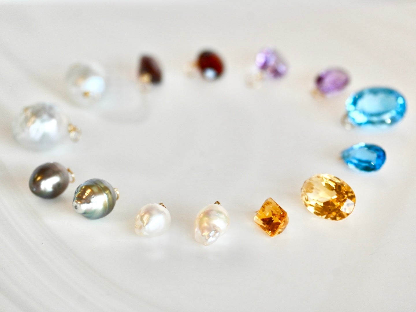今回のPOP UPでは、人気のドロップネックレスに7月の誕生石「ルビー」の天然石が登場するほか、お持ちのアクセサリーに付け替えて楽しめるチャームにアコヤバロックパールが加わります。その他、POP UP限定で、自分でカラーストーンを選べる「カスタムジュエリー」のオーダーも承ります。