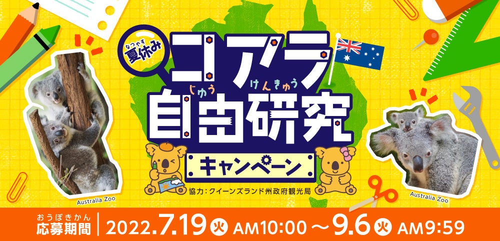 株式会社ロッテ(本社:東京都新宿区)は、「夏休み『コアラ自由研究』キャンペーン」を2022年7月19日(火)AM10時より開催します。ロッテのお菓子とアイスをテーマにしたWebテーマパーク「LOTTE land」の「夏休み『コアラ自由研究』キャンペーン」は、オーストラリア クイーンズランド州政府観光局の協力のもとコアラ保護の啓発活動の1つとして実施します。コアラについて自由研究をし、その内容を写真に撮って応募してください。キャンペーンに参加してくれた方の中から、選考により15作を優秀賞に選定し東京都港区三田にある駐日オーストラリア大使館にご招待。賞状の授与や交流会を行います。ふるってご応募ください。