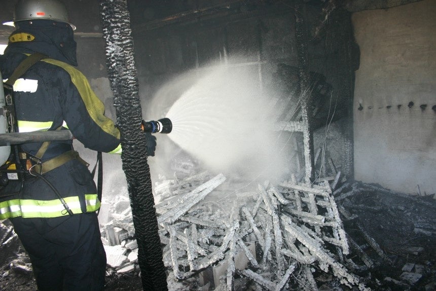 1995年に発生した阪神淡路大震災での教訓を活かし、北九州市消防局・北九州市立大学・シャボン玉石けんの産学官連携で、少水量で素早く消火でき、環境への負荷も非常に少ない「石けん系消火剤」を開発しました。