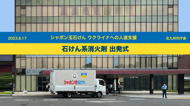 2023年8月17日の午前中、シャボン玉石けんが開発製造した「石けん系消火剤」のウクライナへの人道支援への「出発式」が、北九州市庁舎で開催されました。私が、「では、出発!」と掛け声をかけ、20リットル入消火剤タンク150本を搭載したトラックは門司港に向かいました。10月中には船便のポーランド経由でウクライナの国家非常事態庁の消防チームに届く予定です。 「石けん系消火剤」は2006年に開発に成功しましたが、私は当時からその取材を続け、ミイラ取りがミイラになった感じでそのチームの一員となりました。今年の3月末、北九州市消防局、北九州市立大学、シャボン玉石けんとの会合で、「これをウクライナに人道支援として贈りたい」と提案したところ全員一致で賛同、その経費をシャボン玉石けんが「担います」と言ってくれたのです。 私は、在ウクライナ日本国大使館の松田邦紀大使にその意向を伝えたところ、即、ウクライナ非常事態庁に申し出てくれて支援が決まりました。日本大使館の大変な努力により、最初のウクライナとの会議(6月6日)からわずか2か月余で「出発式」にこぎつけることができたのです。 ウクライナでは理不尽なロシア攻撃で多くの国民が命を失っている、ミサイルやドローン、砲撃による火災も多発している。それらのニュース映像を見て、私たちにできることなどないという無念さを味わっていました。しかし、そうか、シャボン玉石けんの「エコ消火剤」があるじゃないかと思いました。戦争当事国の支援は国のレベルで行うしかないと思い込んでいましたが、シャボン玉石けんという中小企業でもできる貢献があったのです。松田邦紀大使は、「こういうケースは少なく、大使を超えて一日本人として大きな誇りを覚えている」とメッセージを寄せてくれました。 北九州市の「市の花」とウクライナの「国の花」は、どちらも“ひまわり”です。北九州市とウクライナのご縁を末永く大事にしていきたいですし、ウクライナに一日も早く平和な日が戻ることを祈っています。 北九州市で誕生した石けん系消火剤によって、ウクライナで一人でも失わずにすむ命が救われることになれば、これほどの喜びはありません。戦争当事国への応援を軍事・兵器支援ではない形で実現できたことは、今後の日本のウクライナ支援の望ましい形として広く理解されることを期待しています。 (写真・出発式での筆者) |