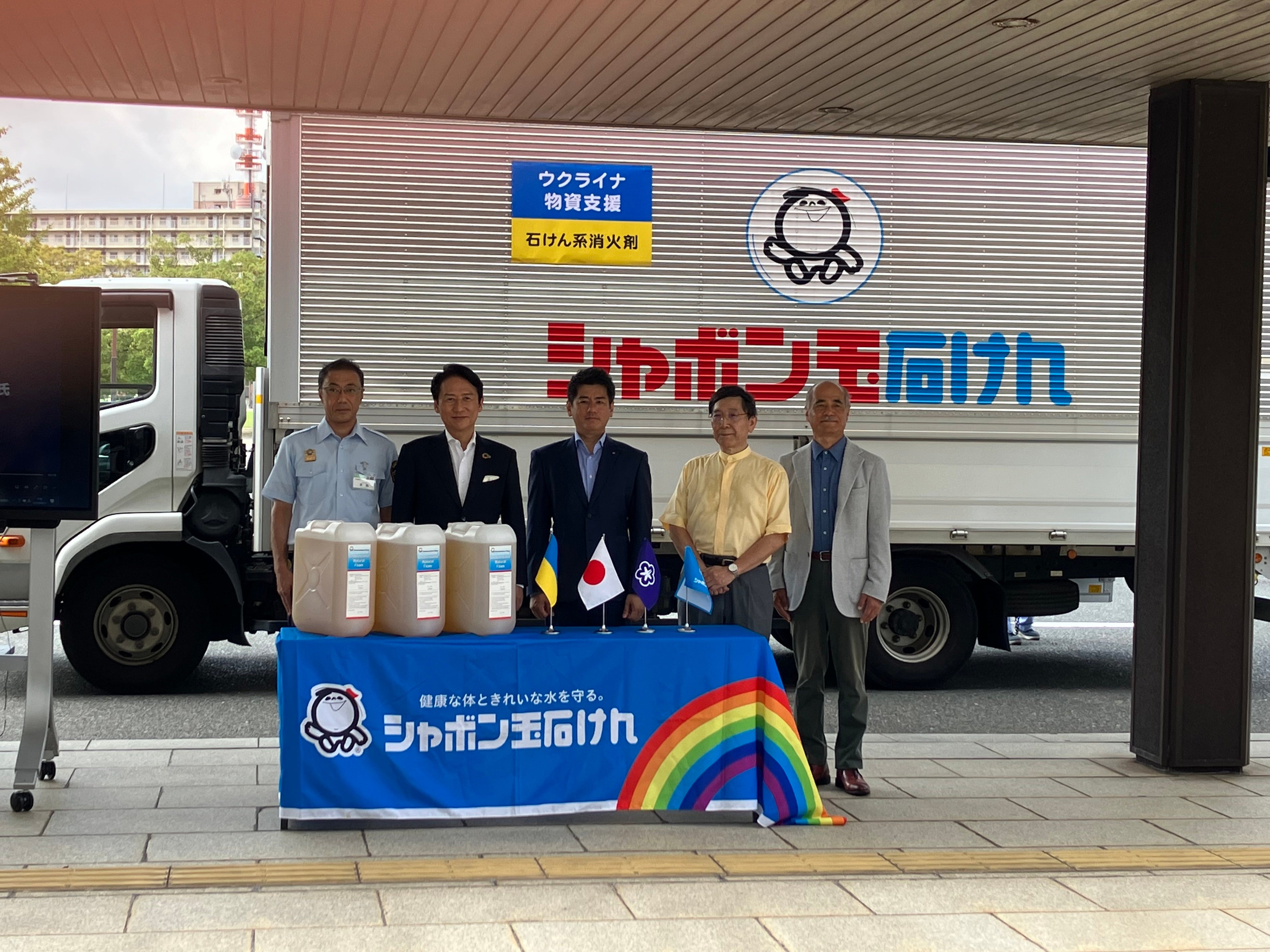 シャボン玉石けんは消火剤事業も行っており、ノンフィクション作家で石けん系消火剤について長年取材されているほか、石けん系消火剤の研究・開発も行う石けんリサーチセンターのスーパーバイザーも務めていただいている山根一眞様のご紹介で、在ウクライナ日本国大使館に物資支援に関して相談し、ウクライナ国家非常事態庁とオンラインで打ち合わせを実施しました。その後、消火性能等の評価をしていただき、同庁から支援の希望を受け、建物火災や森林火災の消火活動のための石けん系消火剤の物資支援を決定しました。