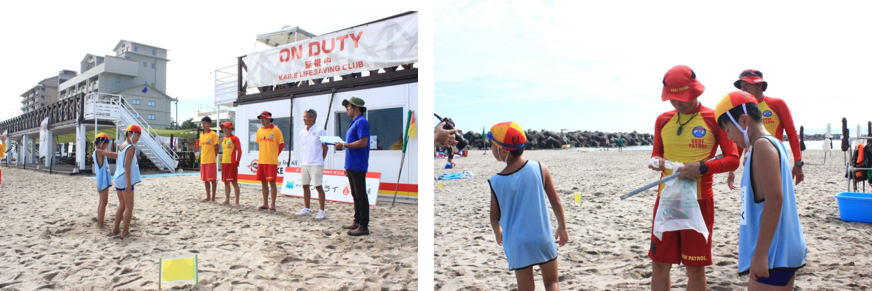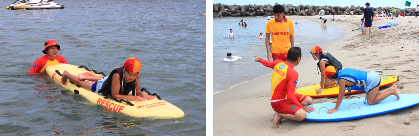 この時期、美しい海を求め多くの観光客が訪れます。ライフセーバーの監視業務開始と共に、ライフセーバーが日々行なっている業務と同じ活動に挑戦しました。