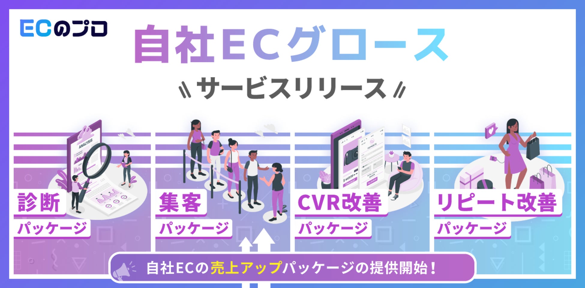 「ECのプロ」は2月よりベータ版としてサービスを開始し、登録者の急増を契機に先日7月5日に本格リリースをいたしました。そこで最も多くのご相談を頂戴した「自社ECを運営する事業主さま」を対象として、この度新たに「自社ECグロース」サービスをリリースすることといたしました。