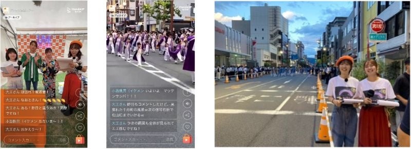 コロナ禍を経て4年ぶりに通常開催となった松山野球拳おどりの会場4拠点(大街道・銀天街踊り会場(1)(2)・堀之内ステージ)と中継を結び、踊り子と観客の熱気を約3時間にわたって配信し2日間で延べ4930人が視聴しました。