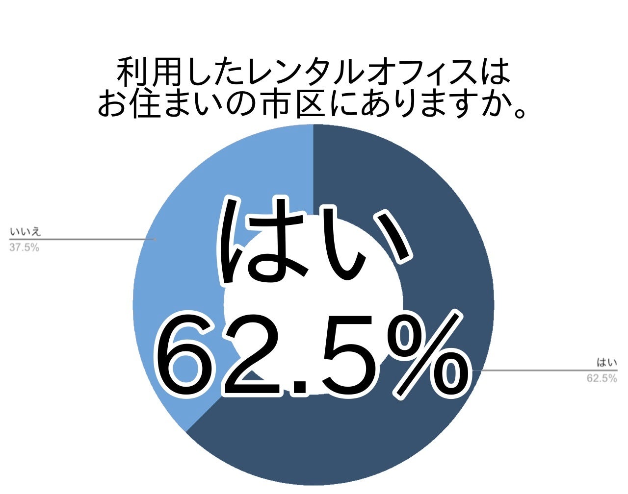 アンケートの結果では吹田市・高槻市・守口市にお住まいの方で利用したレンタルオフィスが居住市区にあると答えた方は約6割(62.5%)でした。