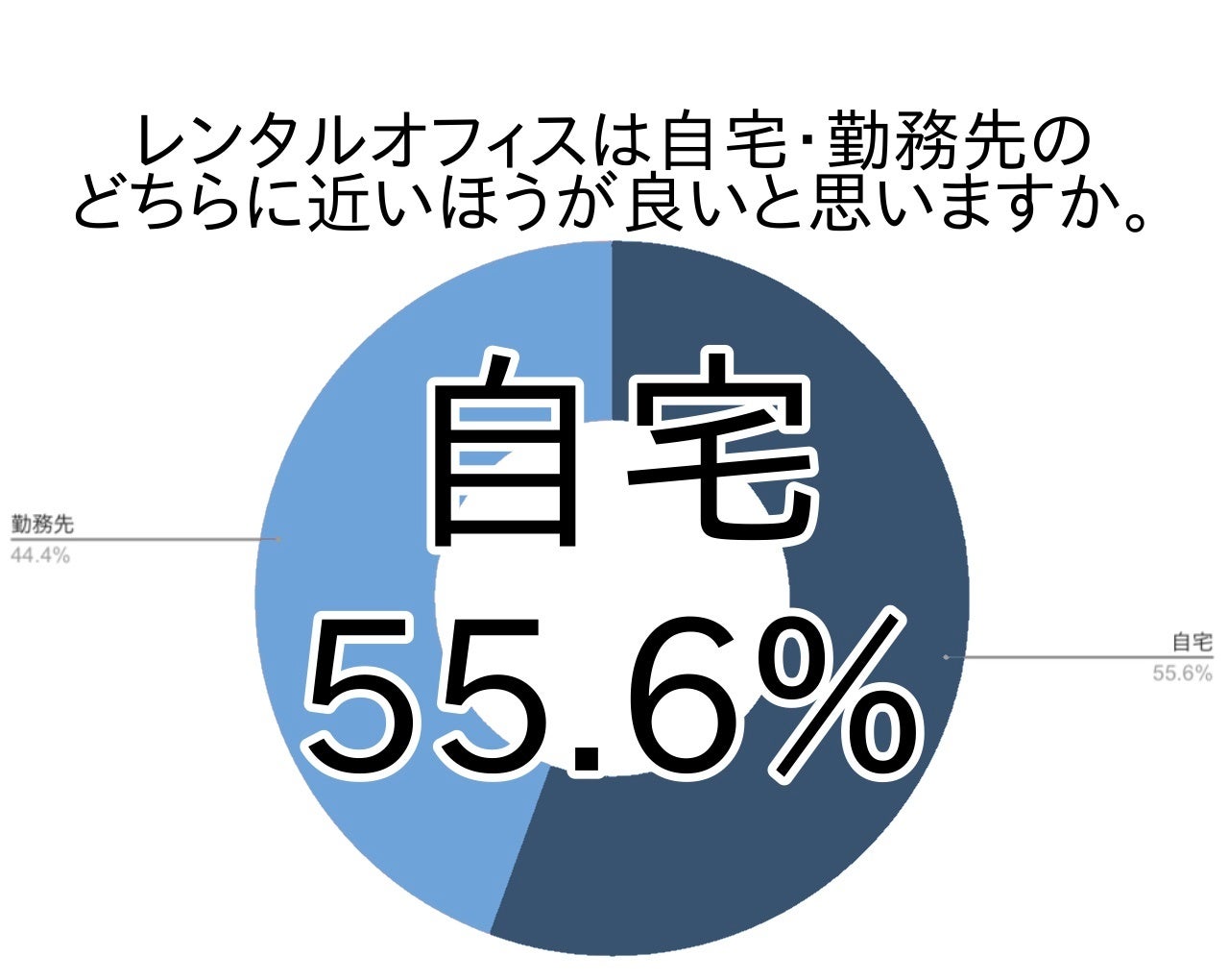アンケートの結果では吹田市・高槻市・守口市にお住まいの方で利用したレンタルオフィスが自宅近くにある方が良いと答えた方は6割弱(55.6%)でした。