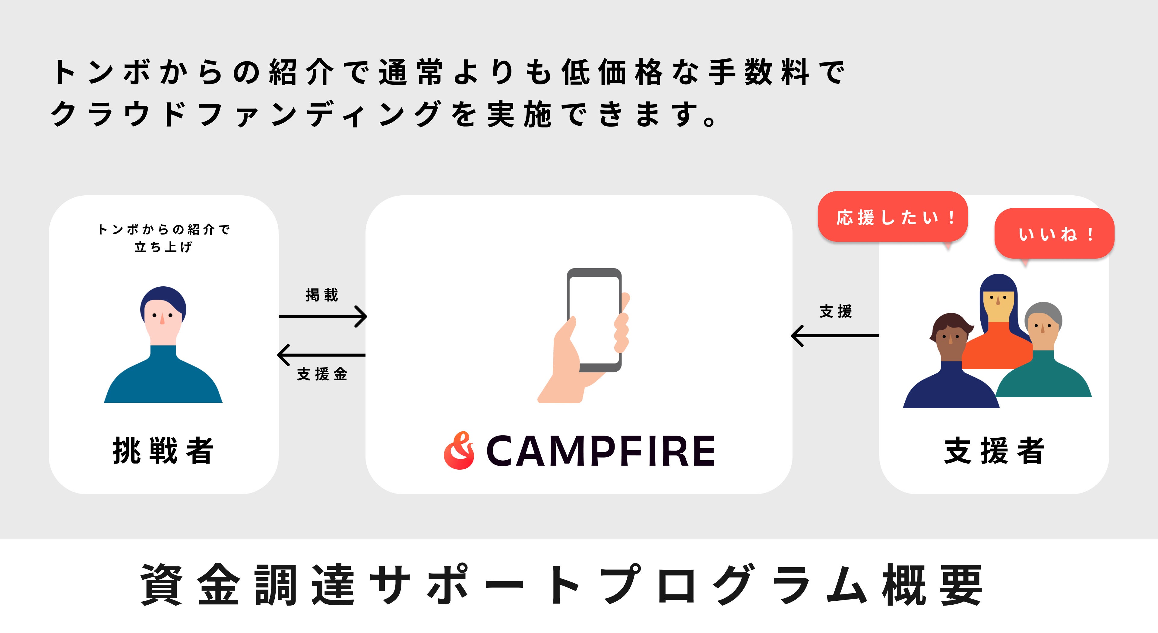「ならす」をミッションに、どんな領域の社会課題もデザインと企画・編集の力で解決していくトンボ は、国内最大級のクラウドファンディングサービス『CAMPFIRE』を運営しているCAMPFIREとパートナー契約を結び、福祉業界で活動している団体・企業の資金調達の支援をします。