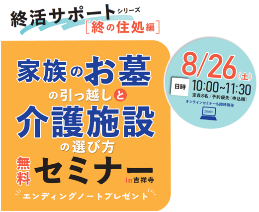 「家族のお墓の引っ越しと介護施設の選び⽅無料セミナー」(第3回「まちの【無料】介護相談会」)概要