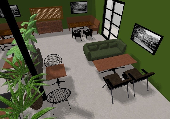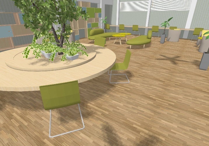 (アルテスペースの3次元シミュレーション提案画像。家具のデザインや色が自由自在に選べる)