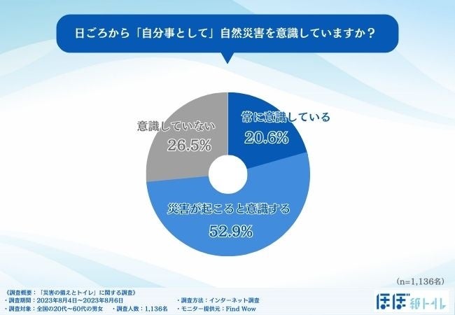 一方、自然災害に対して『意識をしていない(26.5%)』と約4人に1人は意識していない結果となりました。