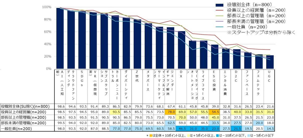 ビジネスキーワード認知度(全体及び役職者別)