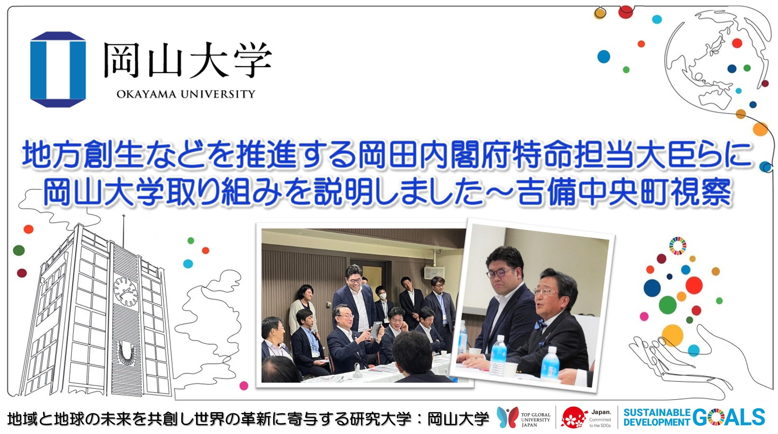 国立大学法人岡山大学は、国連の「持続可能な開発目標(SDGs)」を支援しています。また、政府の第1回「ジャパンSDGsアワード」特別賞を受賞しています。地域中核・特色ある研究大学:岡山大学にご期待ください