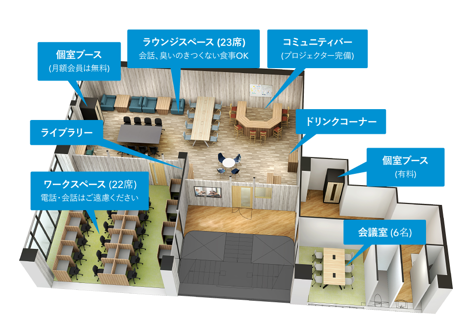 なお、小平スタジオの開設に先立ち、今年1月1日には「国分寺」駅、南口より徒歩1分の場所に「勉強カフェ 国分寺スタジオ」を開業しております。2店舗どちらでも使えるプランを用意することで、会員の利便性を図っています。