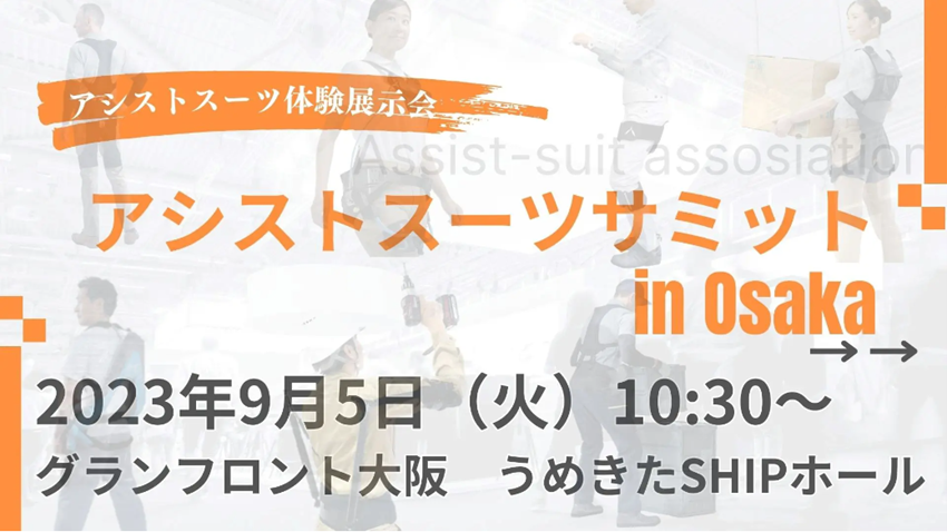 アシストスーツ協会の一般社団法人化を記念し、大阪では初となるアシストスーツ関連企業が一堂に集う展示体験会「アシストスーツサミット in Osaka」を、 2023年9月5日(火)にグランフロント大阪うめきたSHIPホールにて開催いたします。多種多様なアシストスーツを一度の機会に体感・導入相談ができるほか、アシストスーツの導入支援を手掛けている、逢坂大輔氏(株式会社シーエフロボタス 代表取締役)が「アシストスーツ導入のポイント」をテーマに講演を行います。また、企業における疲労削減の取り組みをテーマとしたパネルディスカッションが予定されています。