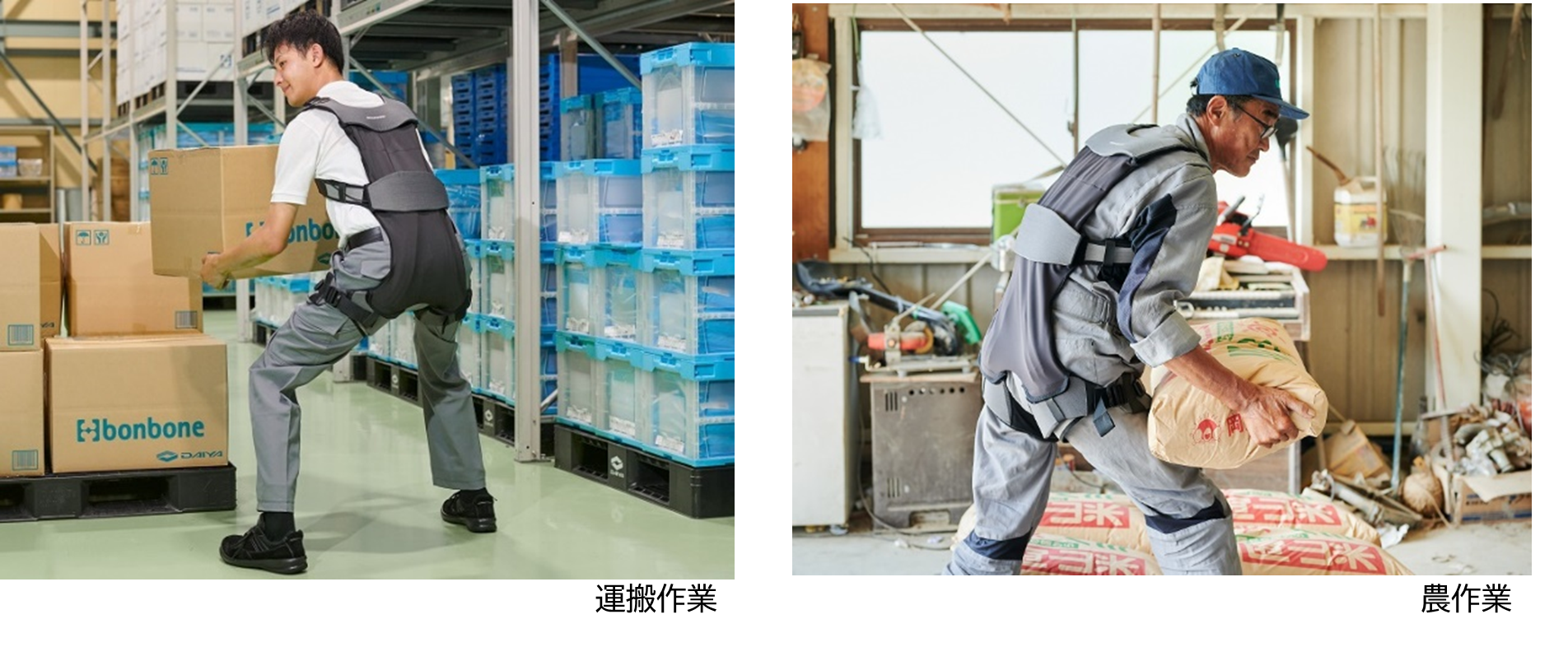当社オリジナルの空気圧式人工筋肉と特殊高反発ゴムを用いて持ち上げ動作や中腰姿勢をアシスト。軽量かつ柔軟性を実現した無電力無電動のサポートウェアです。