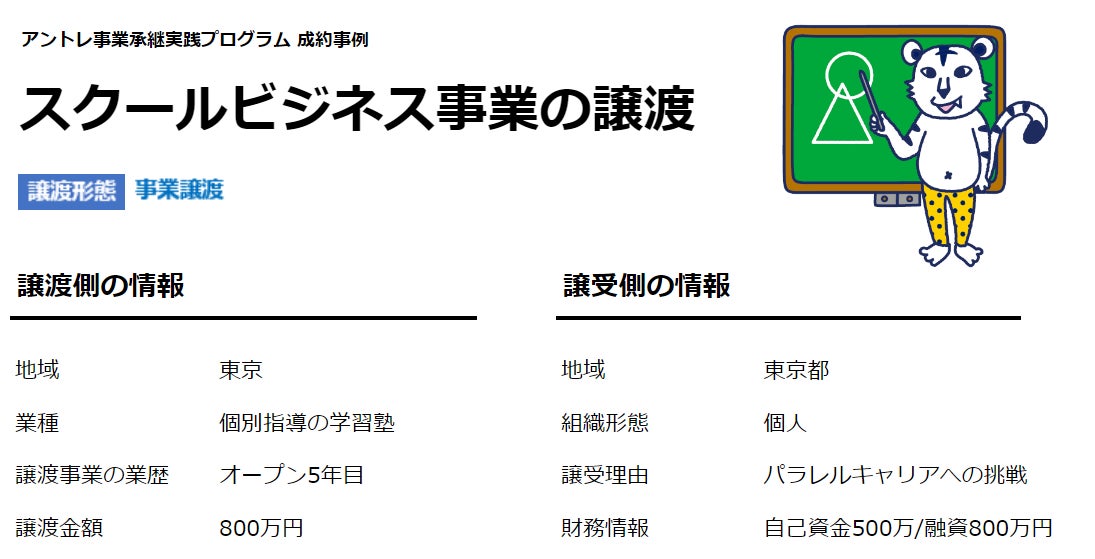東京都在住55才男性がフランチャイズ契約のスクールビジネス事業を譲受