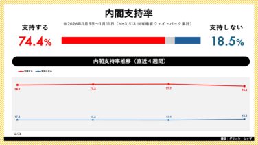 ジャッグジャパン株式会社(本社:東京都渋谷区)は、株式会社グリーン・シップ(本社:東京都千代田区)と業務提携し、グリーン・シップが提供する日次世論調査「世論レーダー」のデータを提供しております。本日、2026年1月第2週(1月5日〜1月1...