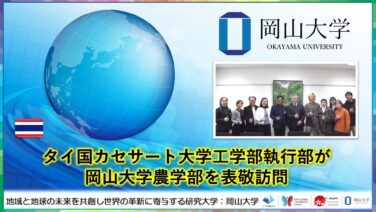 2026(令和8)年 2月 22日国立大学法人岡山大学 ◆概 要  国立大学法人岡山大学(本部:岡山市北区、学長:那須保友)の農学部に2026年2月5日、タイ国カセサート大学工学部からSomchai Donjadee工学部長を含む...