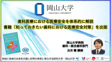 2026(令和8)年 2月 22日国立大学法人岡山大学 <発表のポイント> 医科に比べて安全文化の整備が遅れてきた歯科医療の医療安全上の課題を整理し、病院内で実際に発生した歯科インシデント事例を詳しく解説した書籍を出版しました...