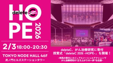 認定NPO法人deleteC(デリート・シー 代表理事:小国士朗)は、2月4日のワールドキャンサーデー(世界対がんデー)※に先駆けて、2026年2月3日(火)に第7回目となる授賞式「delete...