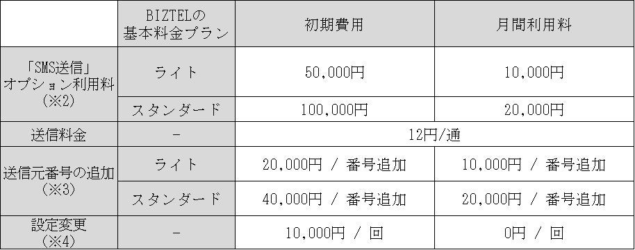 ※2 顧客に通知する「送信元番号」の利用費用(1番号分)が含まれます。