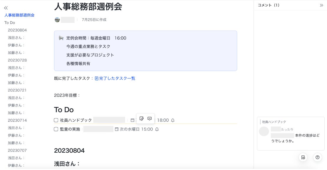 現在、各部門のほとんどの会議は以下「Docs時短会議術」の通りに実行されています: